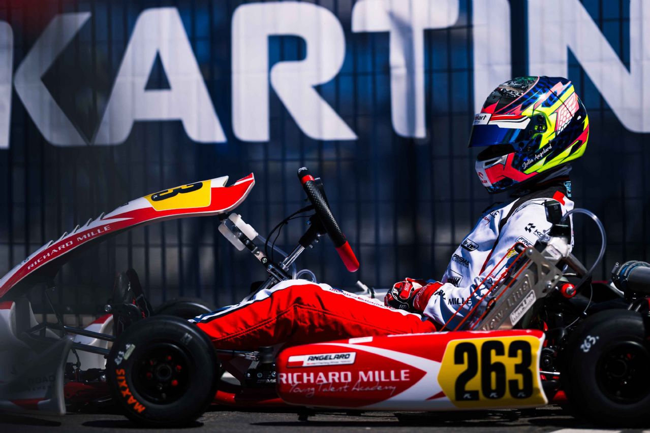 A different European seasonal debut for each Junior driver, but all showed good performance improvements. In qualifying, Nuvola Morales confirmed his speed in his second race with the Racing Team, finishing in the top ten. A similar path for Legenkyi (CL Racing Team), who worked to recover positions during the heats, slowed by incidents and contact on track. In the Super Heat, Legenkyi achieved one of the best comebacks, gaining nineteen positions. FIA debut for Barrichello Kart colors with Achille Rea, fighting during the heats and Super Heat with nearly ten positions gained. Improving results for Julia Angelard, and first European experience for d’Ambrosio.